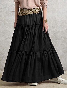Naisten Muoti Vapaa-aika Maxi Keskivyötärö Hameet Yhtenäinen Rypytetty Röyhelö Päivittäin Loma Musta Viini Purppura Ruskea Kevät kesä Puuvillainen pellava