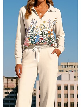 Naisten College Verryttelypuku Veryttelyhousut Kurenauha Tasku Kukkapainatus Takki ja verryttelyhousut Urheiluvaatteiden sarja Aulavaatteet Kesä Kevät Syksy Talvi Laivasto Musta Kuntosaliharjoitus