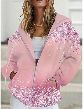Naisten Vetoketjulliset hupparit Hupparit Sulkea jnk vetoketju Tasku Kuvitettu Abstrakti Muoti Katutyyli Vapaa-aika Pitkähihainen Hupullinen Tavalliset topit Kausaliteetti Arkikäyttö Bile Punastuvan