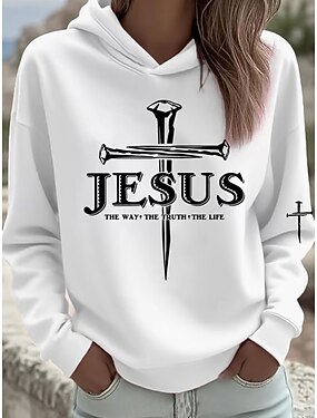 Naisten Pullover-huppari Hupparit Painettu Kuvitettu Muoti Vapaa-aika Pitkähihainen Tiukka pyöreä kaula-aukko Tavalliset topit Katu Arkikäyttö Vaalea purppura Purppura Apila Beesi Kevät Syksy Faith