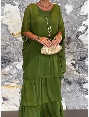 Naisten Maksimekko Rento mekko Sifonki Mekko Tyylikäs Muoti Moderni ulko- Loma Bile Normaali Tavallinen Puolihiha Tiukka pyöreä kaula-aukko Musta Valkoinen Purppura Apila Kesä Kevät