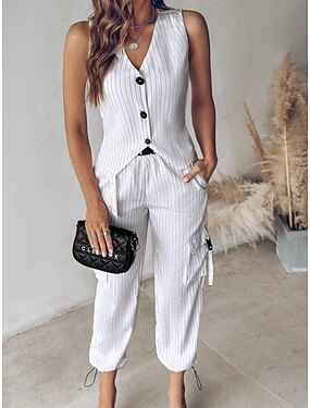 Naisten Kaksiosaiset setit Liivi Housusarjat Hihaton V kaula-aukko Raidoitettu Muoti Katutyyli Kausaliteetti Päivittäin ulko- Musta Valkoinen Apila Kesä Normaali
