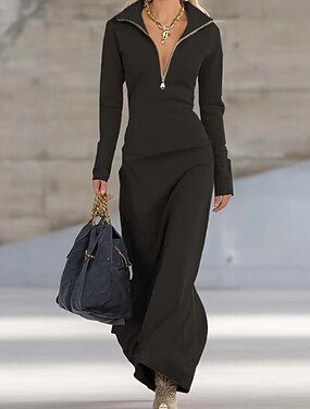 Naisten Pitkä mekko Maxi mekko Rento mekko Kellomekko Perus Moderni Toimisto Loma Bile Normaali Loose Fit Tavallinen Pitkähihainen V kaula-aukko Vaalean keltainen Musta Ruskea Vaaleanharmaa Kevät