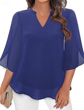 Naisten Pusero Sifonki Topit Tilkkutäkki Tavallinen Tyylikäs Vapaa-aika Puolihiha V kaula-aukko Tavalliset topit Päivittäin Pyhäpäivä Bile Musta Punastuvan vaaleanpunainen Viini Rubiini