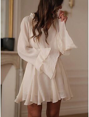 Naisten Mini mekko Valkoinen mekko Rento mekko Tyylikäs Muoti Moderni Päivittäin ulko- Loma Normaali Tavallinen Pitkähihainen V kaula-aukko Valkoinen Kesä Kevät