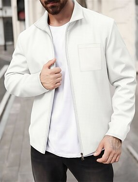 Miesten Kevyt takki Vohvelitakki Rento takki Loma Päivittäin Hengittävä Tasku Kevät Syksy Tavallinen Muoti Klassinen Stand-kaula-aukko Normaali Musta Valkoinen Sininen Khaki Harmaa Jackets