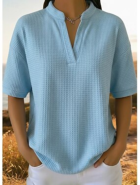 Naisten Vohveli paita T-paita T-paidat Vohvelineuletoppit Tavallinen Tyylikäs Klassinen Moderni Lyhythihainen V kaula-aukko Tavalliset topit Päivittäin Pyhäpäivä Bile Valkoinen Oranssi Apila Vaalean