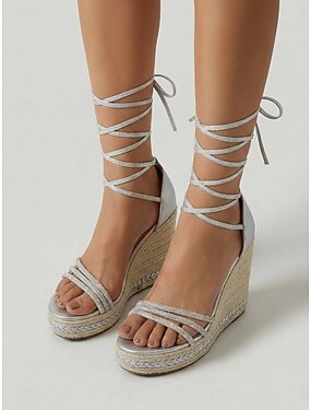 naisten nauhalliset kiilakorkoiset espadrille-sandaalit, avokärkiset remmilliset juhlakengät lomakohteen illalliselle, lomalle &kesäillan tapahtumia