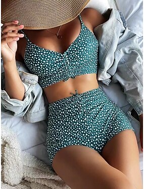 Naisten tankini 2-osainen uimapuku laihduttava shortsi avonainen selkä lomaranta-asu häivytysgraafinen V-kaula aukotonta uimapukua