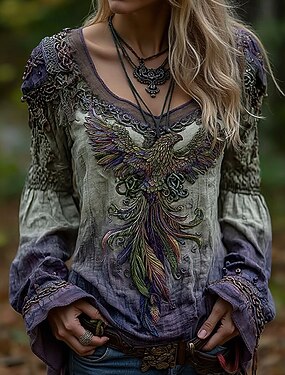 Naisten T-paita Pitkähiha V-kaula Pitkähiha Tunika Tribal Vintage Tyylikäs Boheemi Vintage Normaali T-paidat Päivittäin Lomavaatteet Printti Musta Valkoinen Kevät Syksy Esikausi