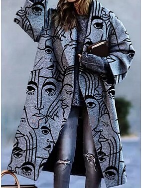 Naisten Talvitakki Takki Mukava Hengittävä Painettu Moderni Vapaa-aika Geometrinen Kausaliteetti Loma Katu Arki-asut Avoin etuosa Pitkä Sänkyjen avaus Normaali Pitkähihainen Päällysvaatteet Valkoinen