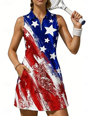 Itsenäisyyspäivä Amerikan 250-vuotisjuhla Naisten Kuvitettu Lippukuvio Urheilumekko Tennispoolomekko Hihaton Neljänneksen postinumero Elastinen Hikeä siirtävä Hengittävä Lentopallo Tennis Golf