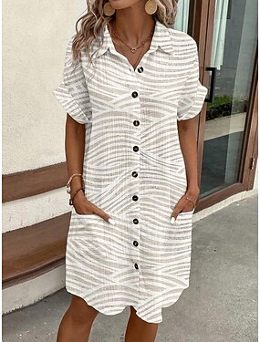 Naisten Mini mekko Paitamekko Rento mekko Painatus mekko Muoti Moderni Päivittäin Hiekkaranta Viikonloppu Normaali Geometrinen Lyhythihainen Paitapuserokaula-aukko Valkoinen Kesä Kevät Syksy