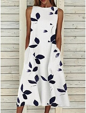 Naisten Midimekko Kesämekko A linjainen mekko Loma Vapaa-aika Boheemi Pyhäpäivä Loose Fit Kukka Kuvitettu Hihaton U kaula-aukko salvain vihreä Apila Harmaa Kesä Kevät