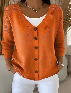 Naisten Neulos Neule Tyylikäs Vintage Muoti Yhtenäinen väri Kukka Kuvitettu V kaula-aukko Tilkkutäkki Napit Kudottu Pitkähihainen Tavalliset topit Neuloa ulko- Koti Päivittäin Sininen Rubiini Syksy