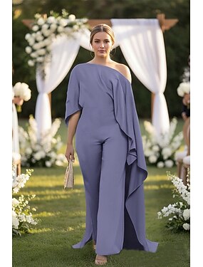 Haalarit Kokopitkä Morsiammen äidin asu Puolihiha Yksiolkaiminen Tyylikäs Vapaa-aika Muodollinen Häävieras kanssa Solid Color
