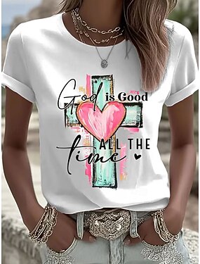 Naisten T-paita Painettu Kuvitettu Kirjain Vintage Tyylikäs Klassinen Lyhythihainen Tiukka pyöreä kaula-aukko Tavalliset topit Päivittäin Sininen Musta Valkoinen Punastuvan vaaleanpunainen Kesä Kevät