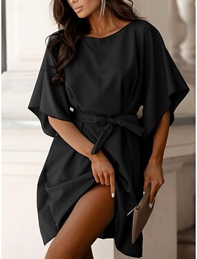 Naisten Mini mekko Musta mekko Rento mekko Muoti Klassinen Moderni Lepakkohiha ulko- Loma Bile Normaali Tavallinen Lyhythihainen Tiukka pyöreä kaula-aukko Musta Kesä Kevät