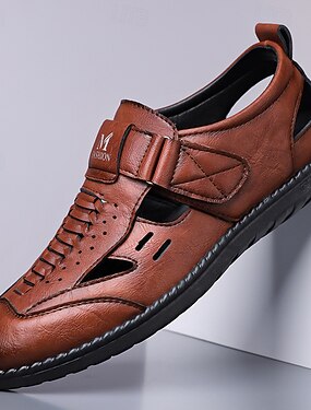 Miesten tummanruskeat punottu hihna keinonahkasandaalit, käsintehdyt avokärkiset vapaa-ajan kengät kesämuotiin ja lomaan