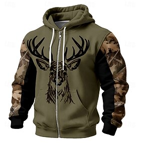 Miesten naamiointi Hirvet Huppari Takki College Muoti Päivittäin Pitkähihainen Hupullinen Loma Metsästys Ruskea Apila Khaki Kurenauha Vetoketju Syksy Talvi Suunnittelija S M L XL XXL XXXL