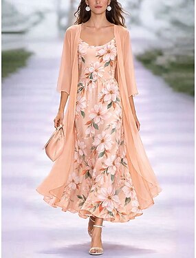 Naisten Mekko Setti Maxi Mekko A-linjainen Mekko Kesä Mekko Loma Ombre Kukka Kerroksellinen Printti Maxi Mekko 3/4 Pitkät Hihattajat V-kaula-aukko Päivittäin Ulkona Musta Vaaleanpunainen Oranssi Kesä
