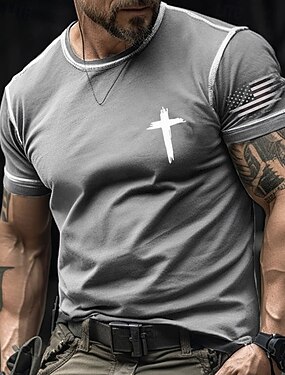 Miesten T-paita T-paidat Lyhythihainen paita Lyhythihainen Tiukka pyöreä kaula-aukko Kesä Yhdysvaltain Yhdysvaltain lippu Risti Muoti Suunnittelija Perus Painettu Loma Katu Bile Musta Punainen Oranssi