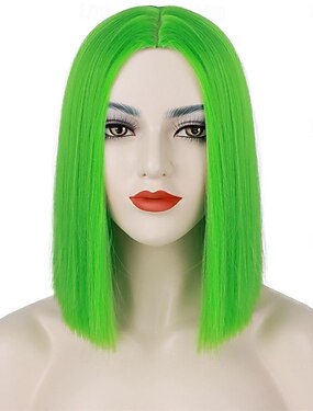 Vihreät peruukit synteettinen peruukki suora bob keskipartio lyhyt vihreä synteettinen hius naisille pehmeä muoti