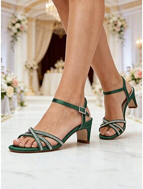 Naisten satiiniset juhlasandaalit - elegantit tummansiniset avokärkiset lohkokorkokengät, joissa on strassikivillä koristellut hihnat ja säädettävä solki, täydelliset juhlatilaisuuksiin ja
