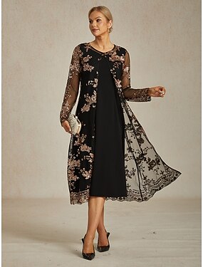 Naisten Pitsi Topit Paljetti Kukka Tyylikäs Pitkähihainen Tiukka pyöreä kaula-aukko Pitkät topit Iltajuhlat Puolivirallinen Ranta häät Musta Kevät Syksy Talvi