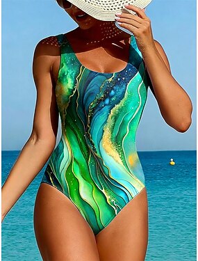 Naisten Uima-asut Yksi kappale Nagy vágás Uimapuku Ranta-asut Kesä Kuvitettu Geometrinen U kaula-aukko Hihaton Uimapuvut