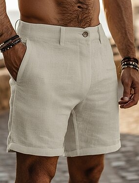 Miesten Liinavaatteet Mekko Shortsit Kesähousut Rantahousut Vetoketju Tasku Napit Yhtenäinen väri Tavallinen Mukavuus Pehmeä Polven pituus ulko- Kausaliteetti Päivittäin Loma Muoti Musta Valkoinen