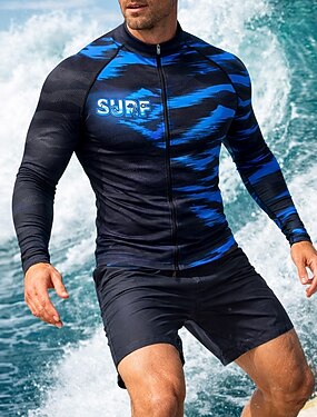 Miesten Vakio Ihottumissuoja Uimapaita Geometrinen Kaltevuus Värien estäminen Sulkea jnk vetoketju UPF50+ UV suoja Nopea kuivuminen Pitkähihainen Uima-asut Rash guard -suojapaita Lainelautailu