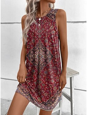 Naisten Mini mekko Boho-mekko Rento mekko Kukka mekko Tyylikäs Muoti Moderni ulko- Loma Bile Normaali Kukka Hihaton Tiukka pyöreä kaula-aukko Sininen Rubiini Purppura Kesä Kevät