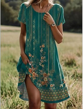 Naisten Mini mekko Kesämekko Tpaitamekko A linjainen mekko Loma Vapaa-aika ulko- Hiekkaranta Bile Normaali istuvuus Kukka Kuvitettu Paisley-kuvio Lyhythihainen Pyöreäkauluksinen Kastanjanruskea