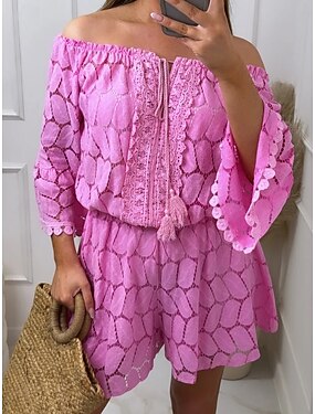 Naisten Mini mekko Valkoinen mekko Pitsimekko Rento mekko Muoti Moderni ulko- Loma Bile Normaali Tavallinen Pitkähihainen Olkaimeton Punastuvan vaaleanpunainen Kesä Kevät