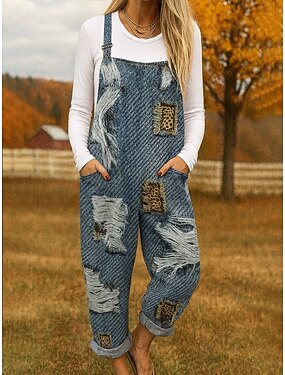 Naisten 100% puuvillaiset haalarit aktiiviseen käyttöön graafisella kuosisella ilman hihoja suorat lahkeet neliön muotoinen kaula-aukko tasku lomamatka päivittäinen löysä istuvuus valkoinen sininen