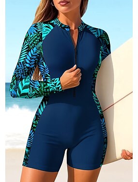 Naisten Normaali Ihottumissuoja Koko kehon ihottumasuoja Uimapuku Kukat Trooppinen Värien estäminen sisäänrakennetulla rintaliivellä Etuvetoketju UV-aurinkosuojaus UPF50+ Venyvä Kokovartalo Uima-asut