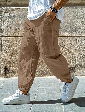 Miesten Jogger Pellavahousut Housut Kesähousut Roikkuvat housut Kurenauha Joustava resori Tavallinen Mukavuus Hengittävä Täyspitkä Päivittäin Katuvaatteet Pyhäpäivä Loma Muoti Sininen Musta
