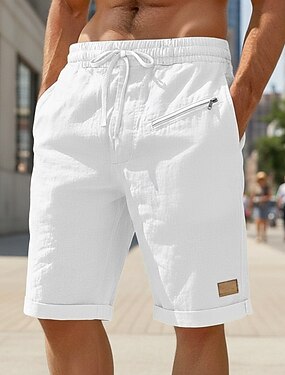 Miesten Liinavaatteet Kesähousut Rantahousut Kurenauha Joustava vyötärö Vetoketjullinen tasku Tavallinen Solid Color Mukavuus Pehmeä Polven pituus Päivittäin Hiekkaranta Muoti Tyylikästä ja modernia