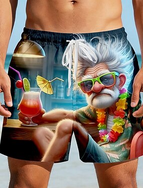 Miesten Hauska Sarjakuvahahmo Vanha mies Uimahousut Uimashortsit Surffishortsit Keskivyötärö Retro / vintage ulko- Loma Arkikäyttö Sivutaskut Verkkovuori Joustava kiristysnyöri vyötäröllä