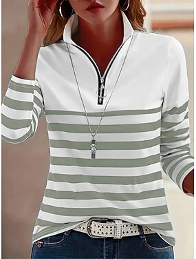 Naisten Tunika Kuvitettu Raidoitettu Vintage Tyylikäs Klassinen Pitkähihainen Paitapuserokaula-aukko Tavalliset topit Päivittäin Urheilu Bile Sininen Musta Rubiini Apila Khaki Kevät Syksy
