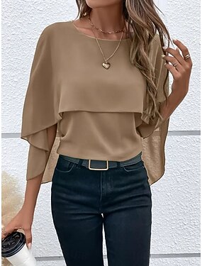 Naisten Pusero Rypytetty Yhtenäinen väri Tyylikäs Perus Vapaa-aika 3/4 hiha Tiukka pyöreä kaula-aukko Tavalliset topit Päivittäin Sininen Musta Punastuvan vaaleanpunainen Rubiini Kameli Kesä Kevät