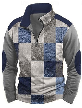 Miesten Abstrakti Geometrinen Polo Pitkähihainen Poolopaidat Kauluskäänne Business Casual Urheilu- ja treenivaatteet Arki-asut 3D-tulostus Quarter Zip Polo Kevät Syksy Talvi Valkoinen Rubiini Sininen