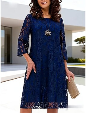 Naisten Polvipituinen mekko Pitsimekko Juhlamekko Coctail-asu Tyylikäs Hiekkaranta Juhla Häät Normaali Tavallinen Puolihiha V kaula-aukko Sininen Rubiini Kesä Kevät