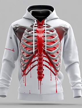 Miesten Pääkallot 3D Huppari College Punk Liioiteltu Goottityyli Vapaa-aika Pitkähihainen Tiukka pyöreä kaula-aukko Hupullinen Katuvaatteet Klubi Sininen Rubiini Apila Harmaa Kurenauha Syksy Talvi