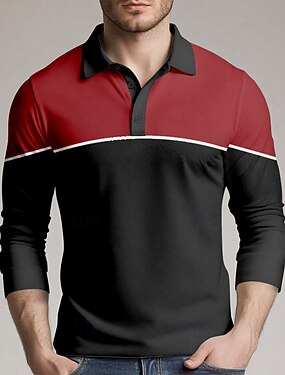 Miesten Salama Polo Pitkähihainen Poolopaidat Kauluskäänne Vapaa-aika ulko- Katu Urheilu- ja treenivaatteet Arki-asut 3D-tulostus Napit Kevät Syksy Talvi Keltainen Rubiini Apila