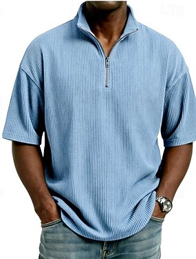 Miesten Polo Vakosamettipaita Päivittäin ulko- Neljänneksen postinumero Lyhythihainen Muoti Perus Tavallinen Vetoketju Kesä Räätälöity istuvuus Sininen Musta Valkoinen Rubiini Laivaston sininen