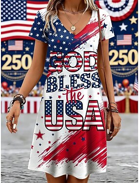 Amerikan itsenäisyyspäivä Naisten T-paita Painettu Kuvitettu Lippu Vintage Tyylikäs Klassinen Lyhythihainen V kaula-aukko Tavalliset topit Päivittäin Sininen Musta Valkoinen Rubiini Kesä Kevät