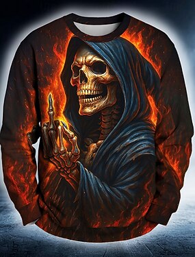 Miesten Paholainen Viikatemies College Punk Juhla Goottityyli Pitkähihainen Tiukka pyöreä kaula-aukko Loma Sininen Keltainen Rubiini Apila Crewneck 3D Kaikki vuodenajat Suunnittelija S M L XL XXL XXXL