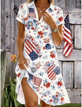 Amerikan itsenäisyyspäivä Naisten Mini mekko A linjainen mekko Loma Vapaa-aika Hiekkaranta Normaali Kuvitettu Lippu Lyhythihainen V kaula-aukko Musta Valkoinen Rubiini Kesä Kevät